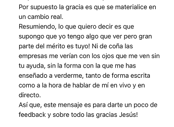Así que, este mensaje es para darte un poco de feedback y sobre todo las gracias Jesús!